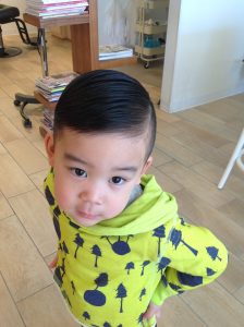 もちろんそこまで興味の無い年齢のお子さんも多いですが、そこはオシャレなご両親がこんな感じにしてあげて下さいとスマホにカッコいいスタイル、かわいいスタイルの写真を用意して見せて頂けるようになりました。その反面、昔も今も「子供のヘアカットは家で切る」という割合は結構多くて、最初は失敗しても回数を重ねていくうちに見られるようになっていくというパターンです。そしてそのうち「家カット」に不満がでてくるようになって初めてお店に連れてきて頂けるというのもよくあるパターンです。