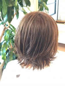 自然な明るさの色での白髪カバー。日本人特有の髪の赤みを抑えた、アッシュ系のグレージュカラーや、最近流行の毛先の方が明るくなっていくグラデーションカラーやハイライトのようなバレイヤージュのような染め方はサロンならではだと思います。